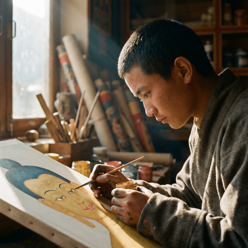 At Tibetan Echo, we believe true luxury stems from the creation and continuation of beauty. Thangka, a millennia-old intangible cultural heritage skill flowing through Tibet's veins, is not merely a practice of the brush; it is the soulful epic of the Himalayan plateau. Every brushstroke contains a profound reverence for the world.