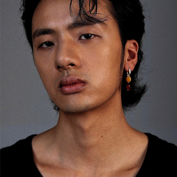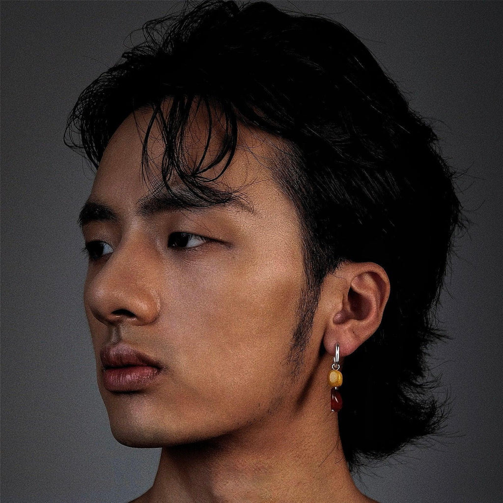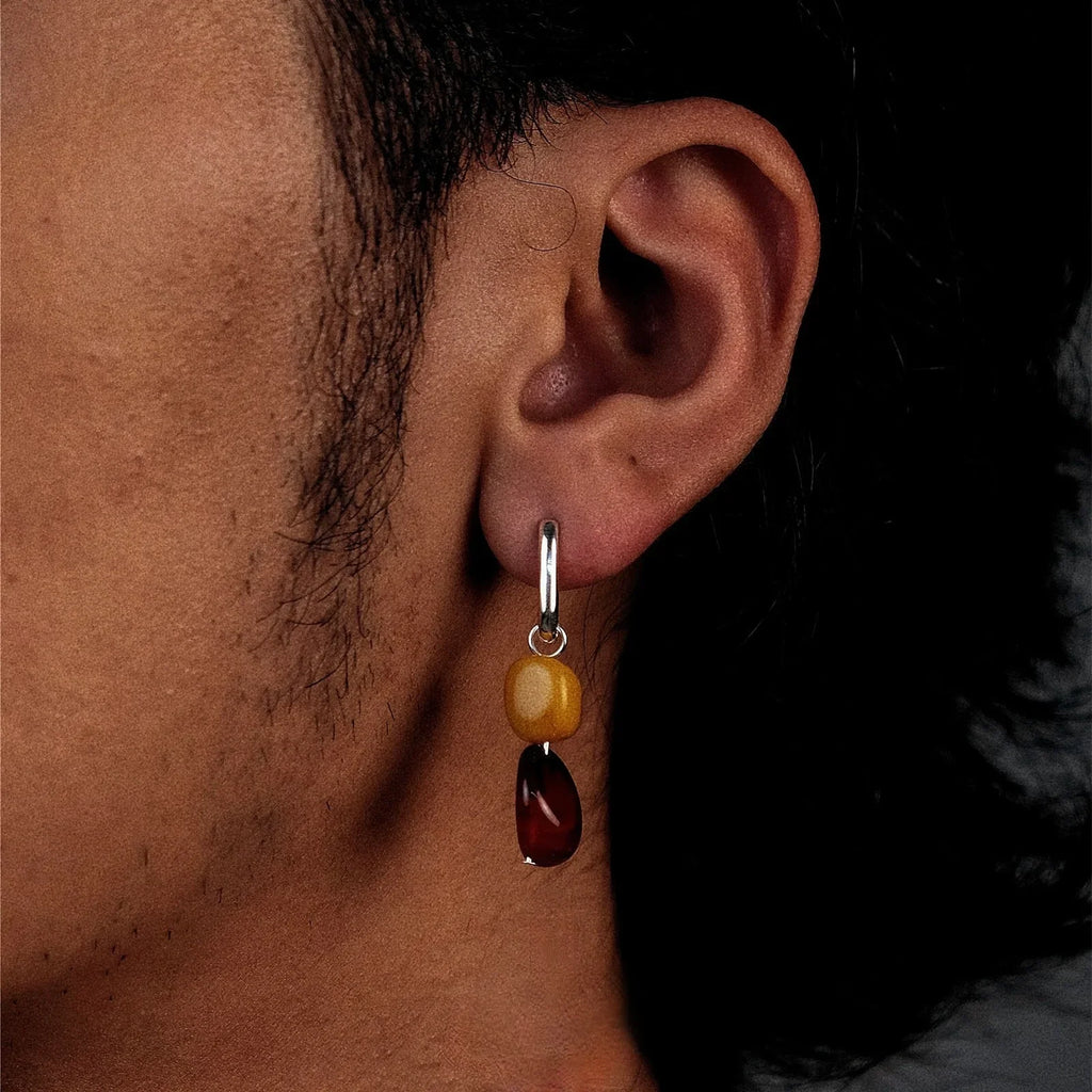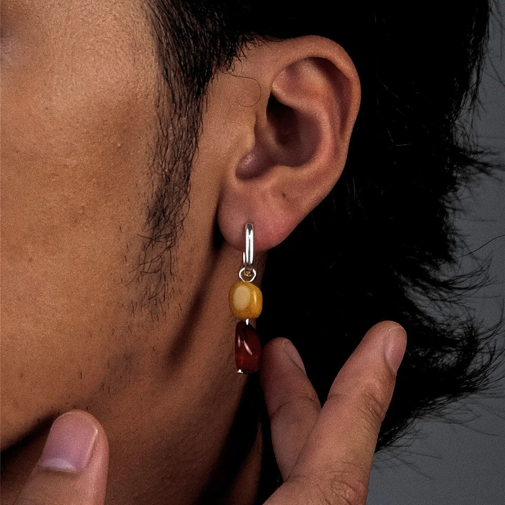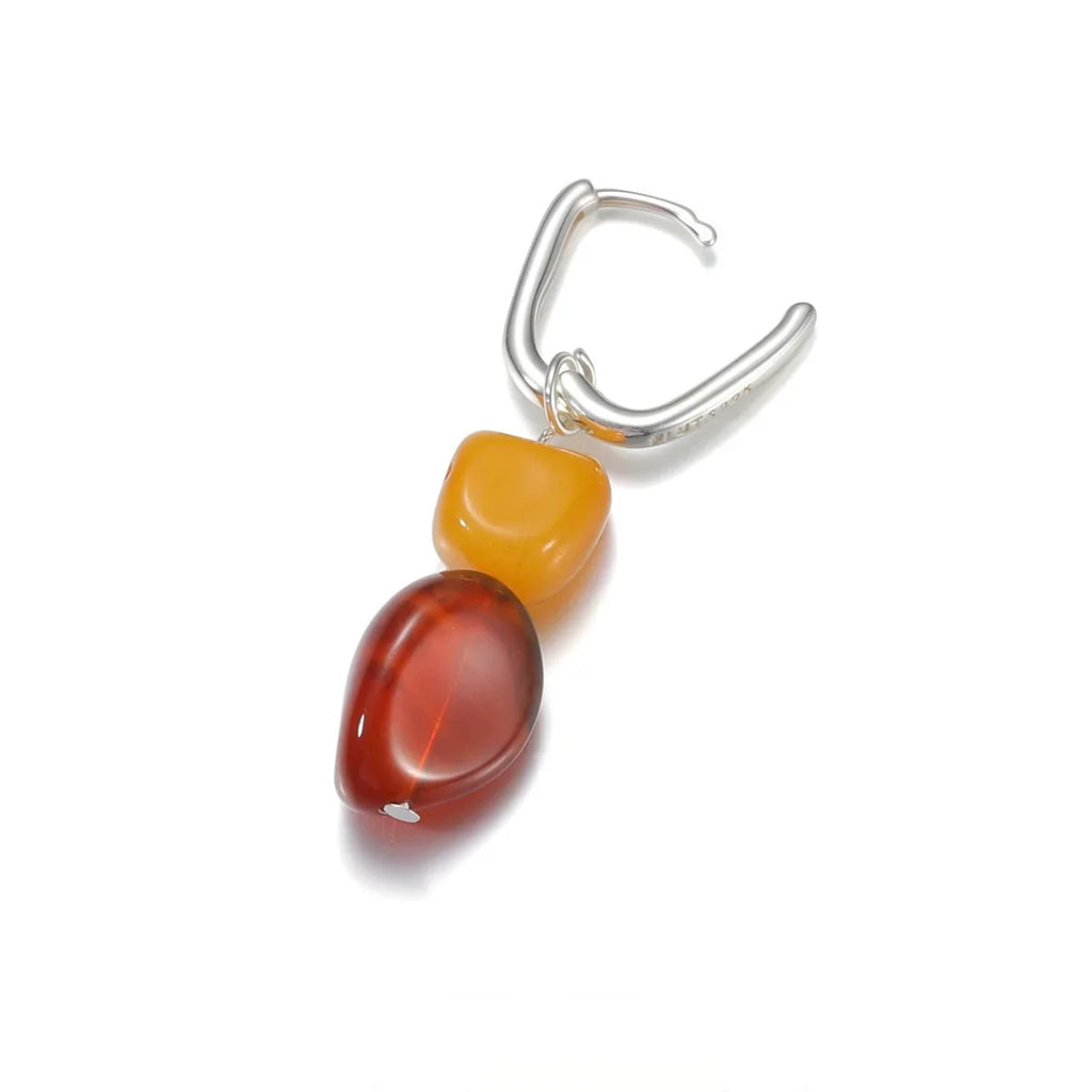 Inspired by captured sunlight and grounded earth energy, these earrings combine a vibrant red agate with a warm beeswax bead, suspended from a minimalist sterling silver hook.