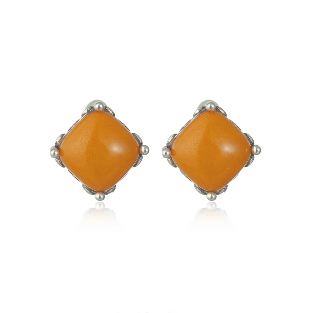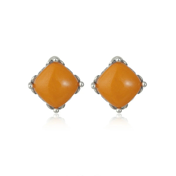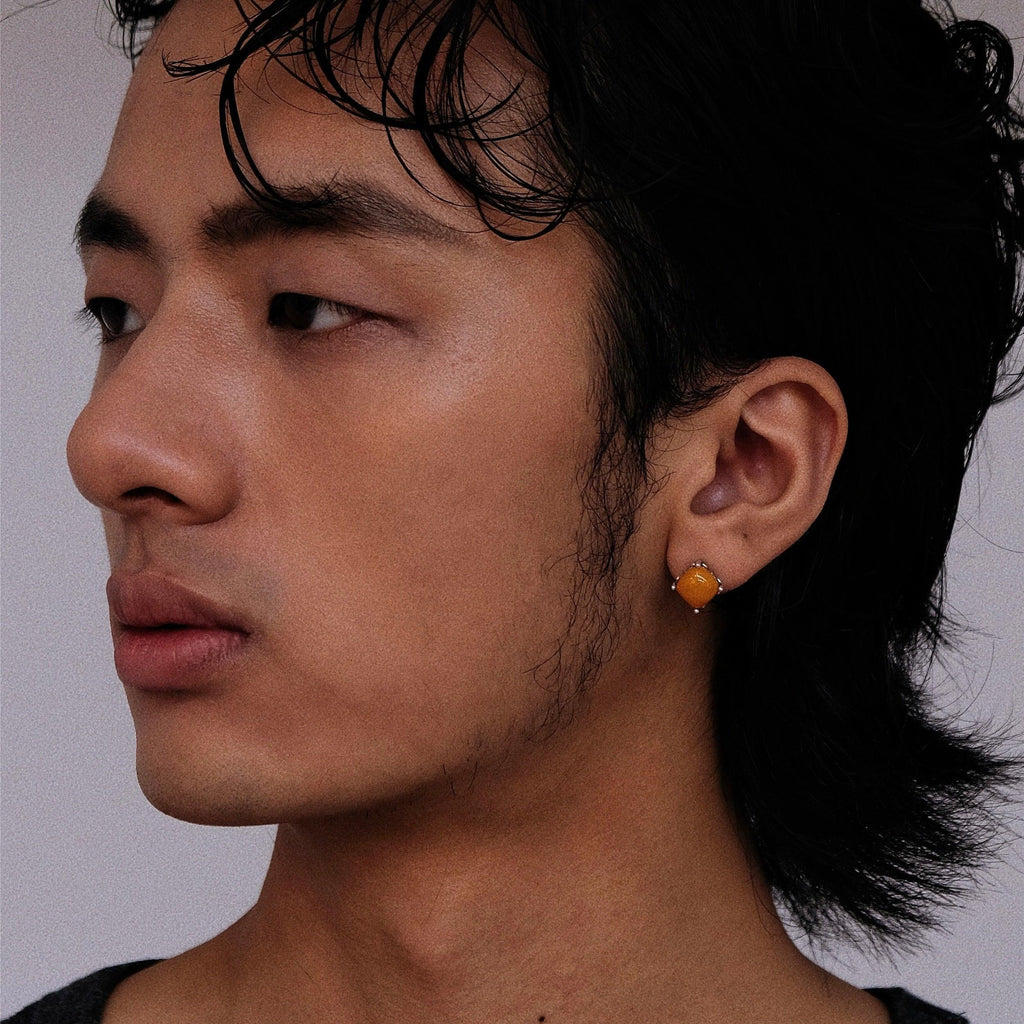 Inspired by captured time and geometric order, these earrings feature a natural square-shaped beeswax set in sterling silver. The design blends organic ancient material with minimalist lines, symbolizing stability, warmth, and timeless elegance.