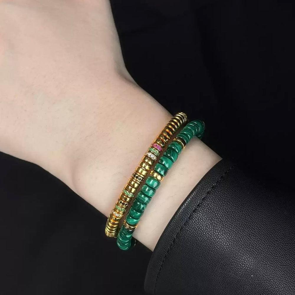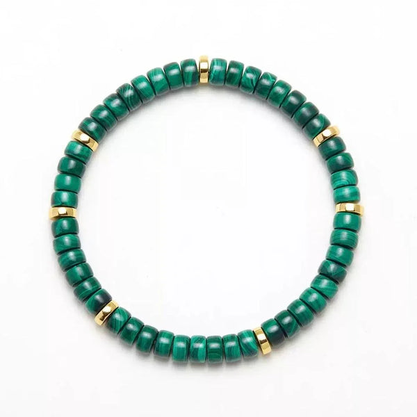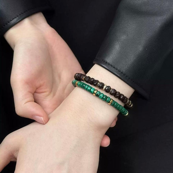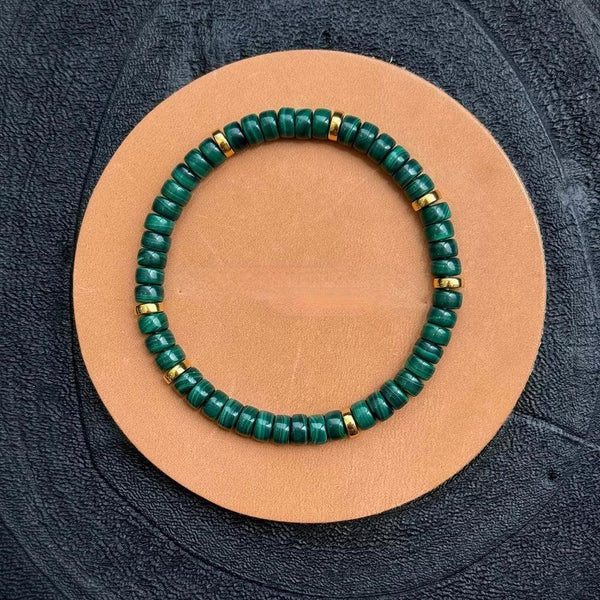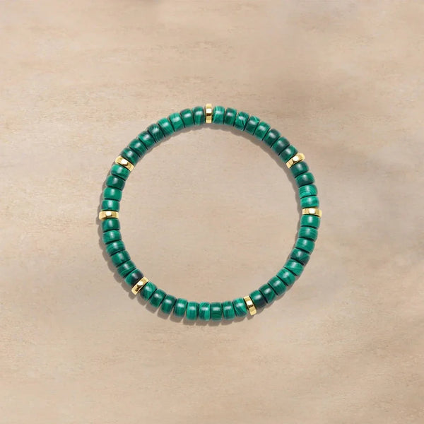 The Trailmarker Natural Malachite Bracelet is inspired by the spiritual path of inner transformation. Malachite is known as the “Purifier of the Soul,” believed to absorb and dissolve emotional trauma, negative energy, and deep-rooted fears.