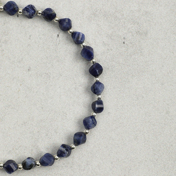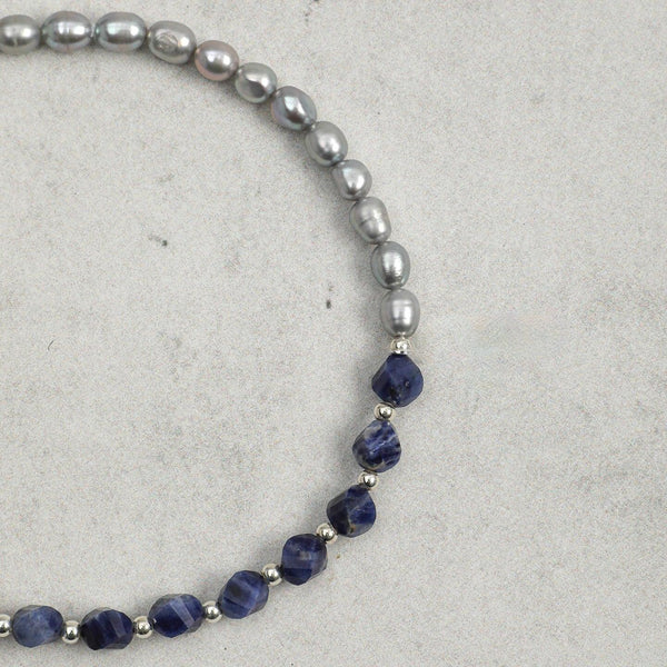 • Materials: S925 Silver, Blue Larimar-style Beads, Gray Freshwater Rice Pearls