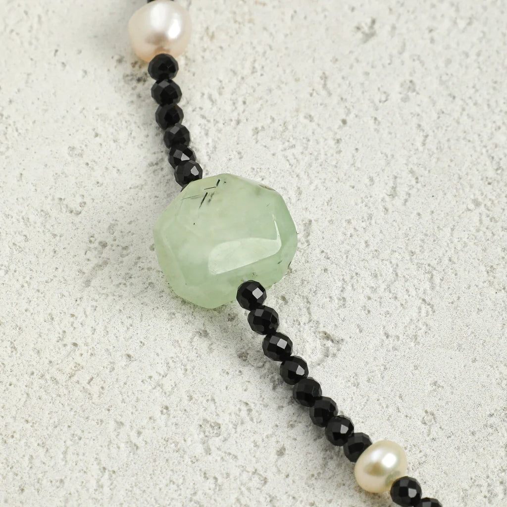 • Materials: Prehnite, Black Tourmaline, Smoky Quartz, Clear Quartz, Freshwater Pearls