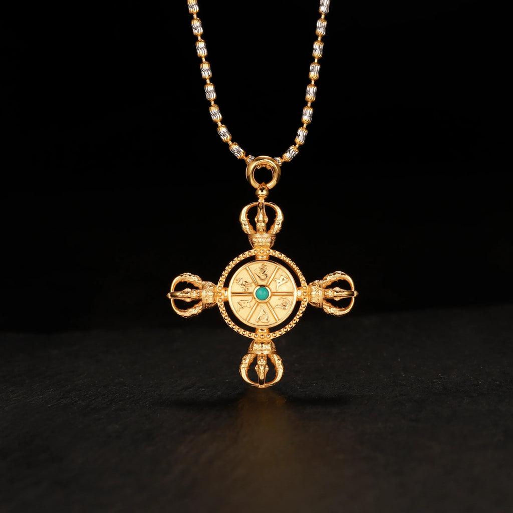 This pendant represents the harmony of wisdom and compassion — strength guided by clarity, and action rooted in awareness. The Vajra reminds the wearer to remain steady in purpose, while turquoise supports calm, protection, and emotional balance.