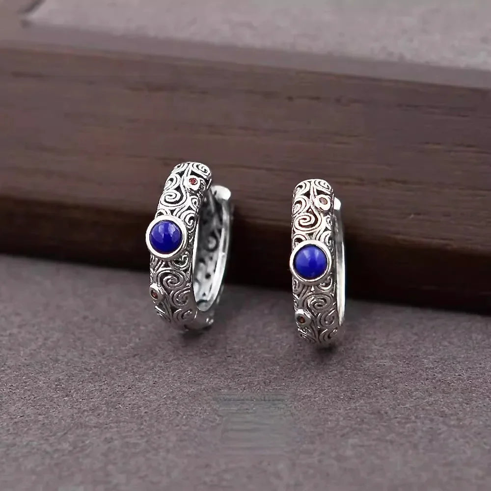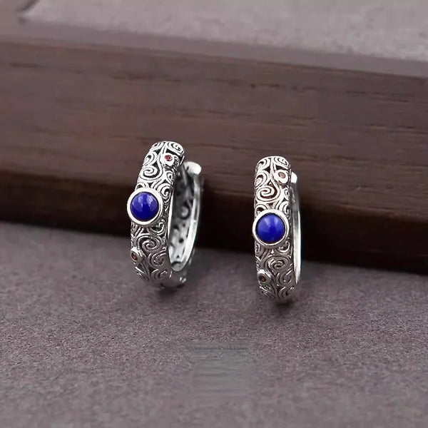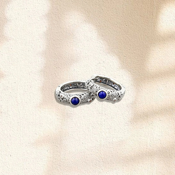 Inspired by the quiet rhythm of ocean tides, the Sapphire Tide Serenity Earrings feature a flowing sterling-silver wave silhouette accented with deep blue lapis lazuli. The circular form reflects continuity, resilience, and the calming movement of water — a reminder to move through life with ease and grounded confidence.
